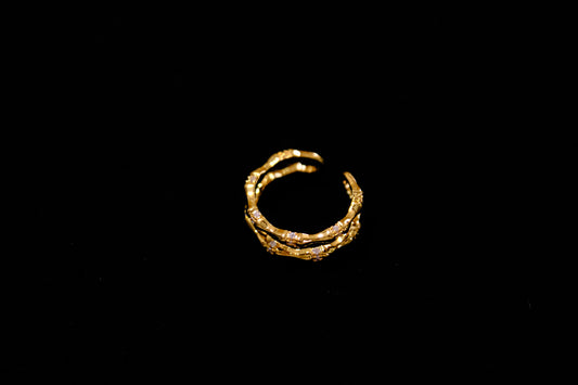 The DUOs 18K Double Layer Irregular Curve Diamond Adjustable Ring